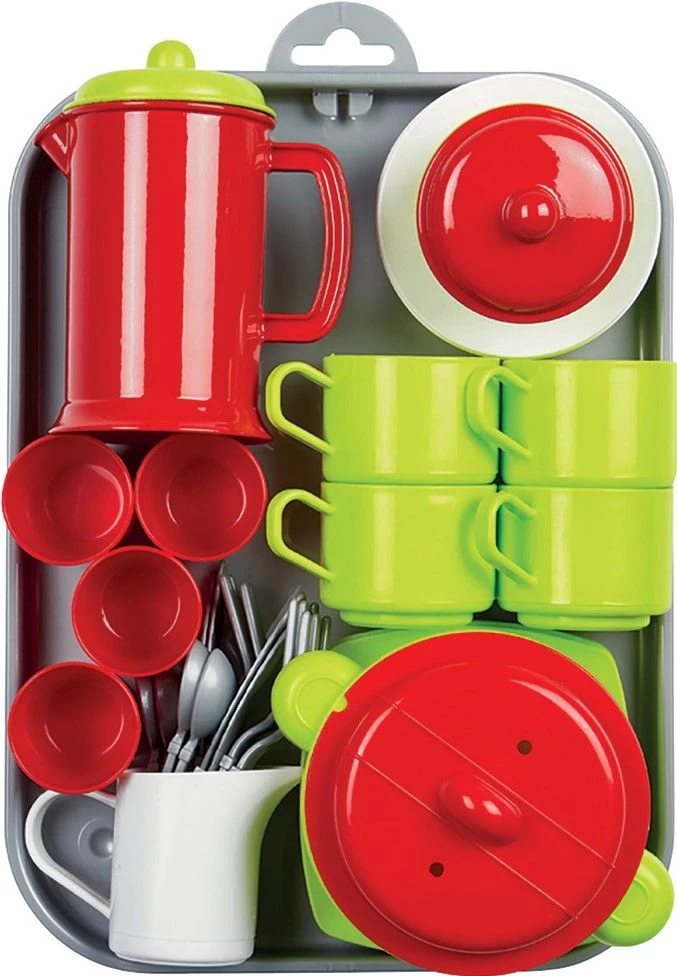 Ecoiffier Παιδικό Σετ Κουζινικά Δίσκος με σετ Κουζινικών για ένα πλήρες γεύμα 4 ατόμων γεμάτος από σκεύη όπως Κανάτα νερού, κούπες, μαχαιροπήρουνα, και cupcakes. Ένας θαυμάσιος τρόπος να ενθαρρύνετε το παιχνίδι ρόλων!