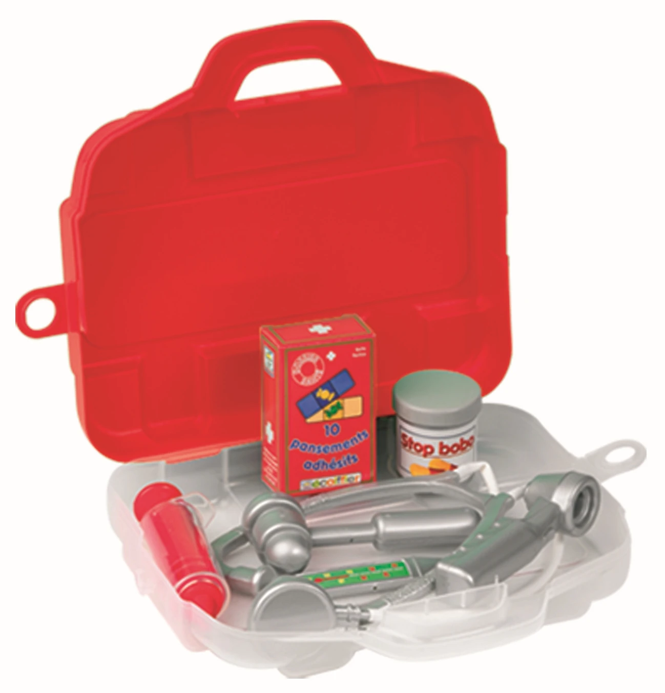 Ecoiffier Παιδικό σετ βαλιτσάκι με ιατρικά εργαλεία. Το βαλιτσάκι πρώτων βοηθειών έχει όλα τα απαραίτητα σύνεργα για το γιατρό! Η συσκευασία περιέχει 7 τεμάχια.