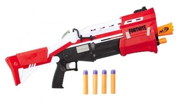 Εκτοξευτής Nerf Fortnite Tactical Shotgun. Κάνε τις μάχες του Fortnite πραγματικότητα με αυτόν τον Mega εκτοξευτή Nerf ! Ο εκτοξευτής Nerf Fortnite TS είναι εμπνευσμένος από τον εκτοξευτή που χρησιμοποιείται στο δημοφιλές βιντεοπαιχνίδι Fortnite, αντιγράφοντας την εμφάνιση και τα χρώματα που έχει στο παιχνίδι. Βάλε 4 βελάκια στο εσωτερικό κλιπ,…