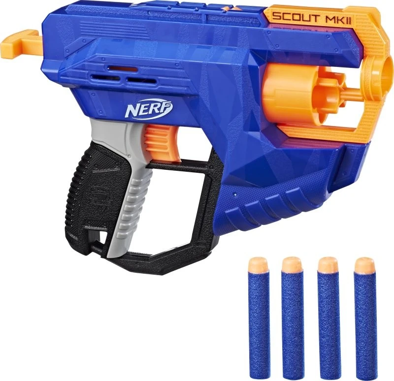 Nerf Elite Scout MKII. Ξετρυπώστε τους αντιπάλους σας και στοχεύστε αστραπιαία με τον εκτοξευτή Nerf N-Strike Elite Scout MKII! Η περιστρεφόμενη θήκη εκτόξευσης χωράει 4 βελάκια Nerf Elite και εκτοξεύει 1 τη φορά. Φορτώστε 4 βελάκια στο μπροστινό μέρος, τραβήξτε προς τα πίσω τη λαβή και εκτοξεύστε 1 βελάκι. Όταν…