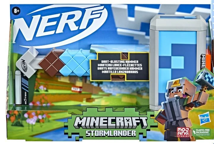 Nerf Minecraft Sox Schiling Το Nerf και το Minecraft συνδυάζονται για να δημιουργήσουν μοναδικούς εκτοξευτές, που αλλάζουν την εμφάνιση της μάχης! Το σφυρί Nerf Minecraft Stormlander, εμπνέεται από το Minecraft: Dungeons, αποτυπώνοντας την εμφάνιση του σφυριού από το δημοφιλές βιντεοπαιχνίδι. Αυτό το σφυρί εκτόξευσης βελών κρατά 3 βελάκια Nerf Elite…