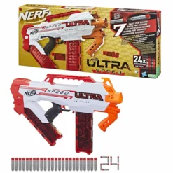 Nerf Ultra Speed Ο εκτοξευτής Nerf Ultra Speed είναι ο ταχύτερος εκτοξευτής Nerf Ultra, που απελευθερώνει 7 βελάκια το δευτερόλεπτο! Αυτός ο εκτοξευτής, περιλαμβάνει δύο κλιπ από 12 βελάκια. Eκκινήστε μια ντουζίνα βελάκια στη σειρά από 1 κλιπ και, στη συνέχεια, φορτώστε το δεύτερο κλιπ για να ρίξετε μια ντουζίνα…