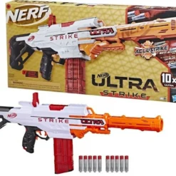 Nerf Ultra Strike Με τον εκτοξευτή Nerf Ultra Strike, έχετε το πλεονέκτημα στη δράση! Ο εκτοξευτής συνοδεύεται από αφαιρούμενο κλιπ, ώστε να μπορείτε να απελευθερώσετε 10 βελάκια στη σειρά. Ανταπεξέλθετε γρήγορα και με ακρίβεια. Πάρτε το προβάδισμα στα παιχνίδια Nerf καθώς αξιοποιείτε τη δύναμη, την απόδοση και την ακρίβεια του…