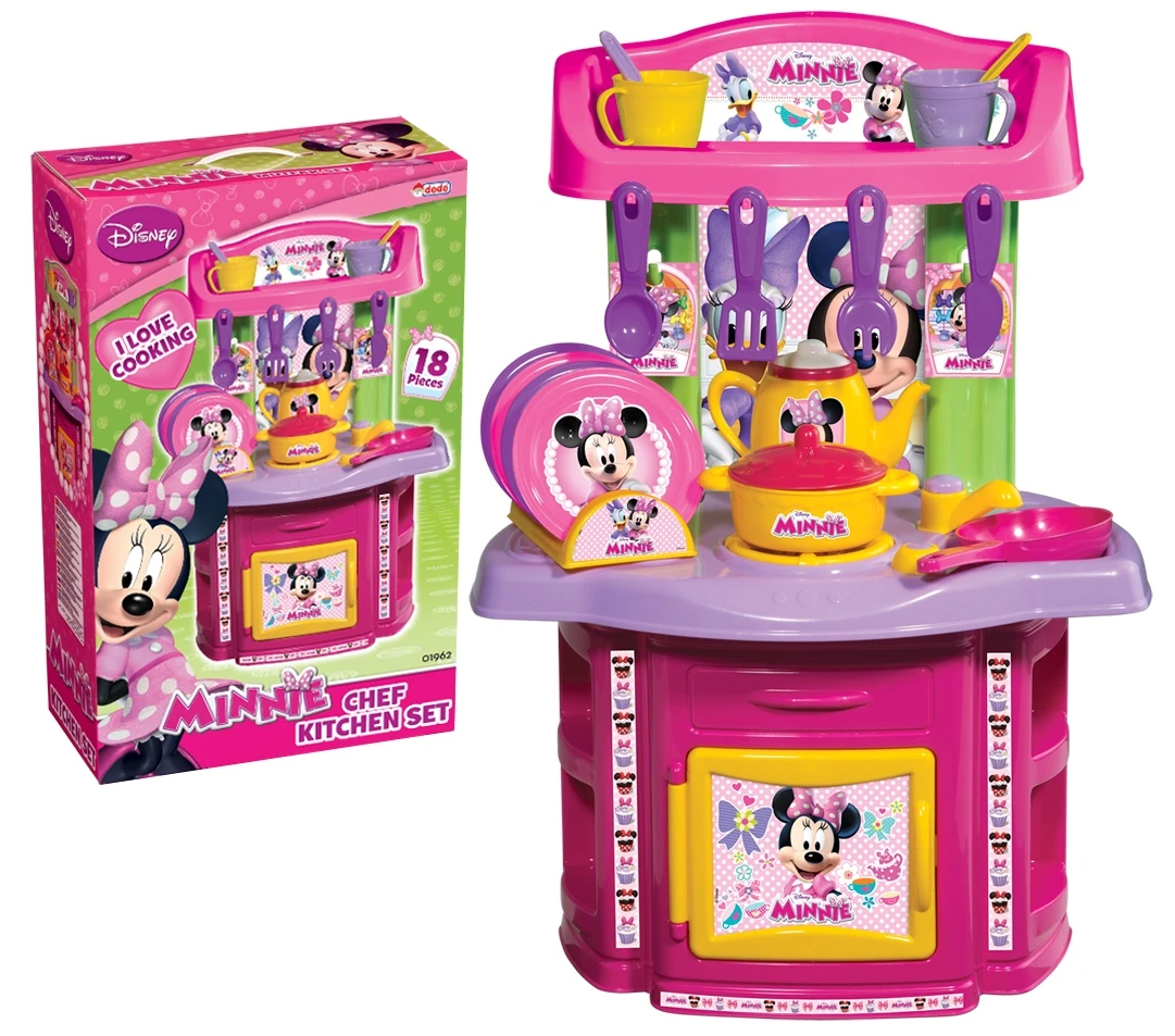 Παιδική πλαστική κουζίνα minnie chef kitchen set 18 τεμαχίων. Περιλαμβάνει: μαχαιροπίρουνο, κουτάλι, σπάτουλα, σκεύη μαγειρικής πιτάκια σε συνδυασμό χρωμάτων.