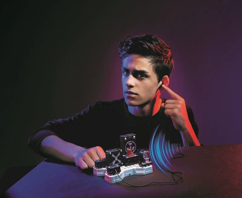Spy X DIY Listener Φτιάξε το δικό σου Spy X Listener! •Μάθετε την επιστήμη πίσω από το Spy X Tech •Δημιουργήστε τα δικά σας πραγματικά εργαλεία Spy X gadgets •Συνδέστε τα καλώδια σύνδεσης και τα εξαρτήματα ασφάλισης στην πλακέτα κυκλώματος •Ακούστε τις μυστικές συνομιλίες