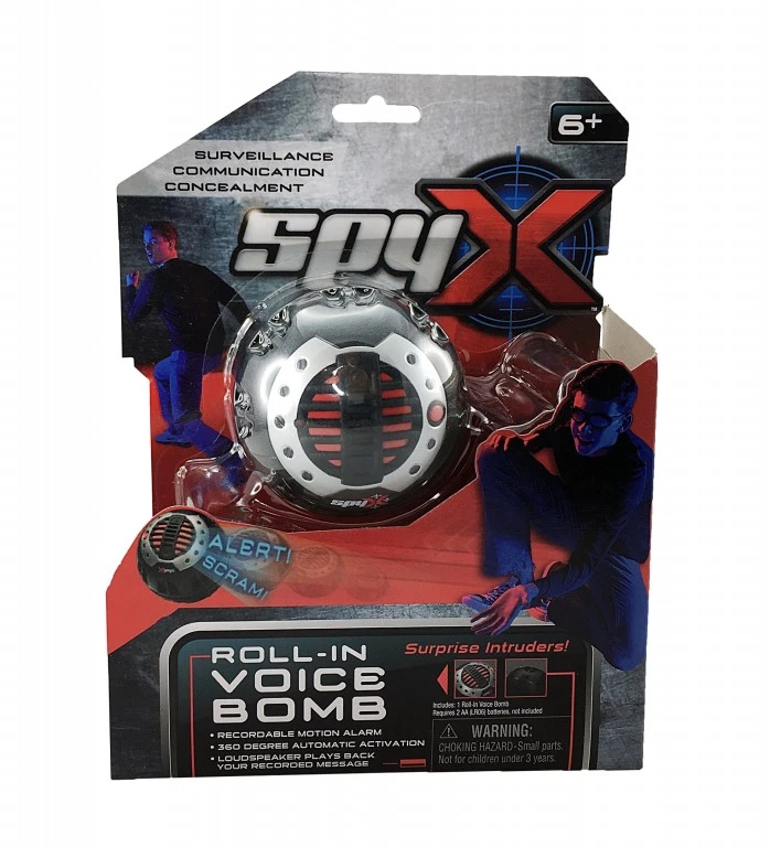 Spy X Roll In Voice Bomb Αιφνιδιάστε τους εισβολείς! Ενεργοποιήστε το Roll- In Voice Bomb μετακινώντας τον διακόπτη ON/OFF Μπορείτε να ηχογραφήσετε μήνυμα! Τοποθετήστε το Roll- In Voice Bomb σε οποιαδήποτε θέση για να ανιχνεύσει εισβολείς μόλις μπουν στο δωμάτιο. Είναι έτοιμο για δράση! Όταν οποιοδήποτε από τους 4 ανιχνευτές…