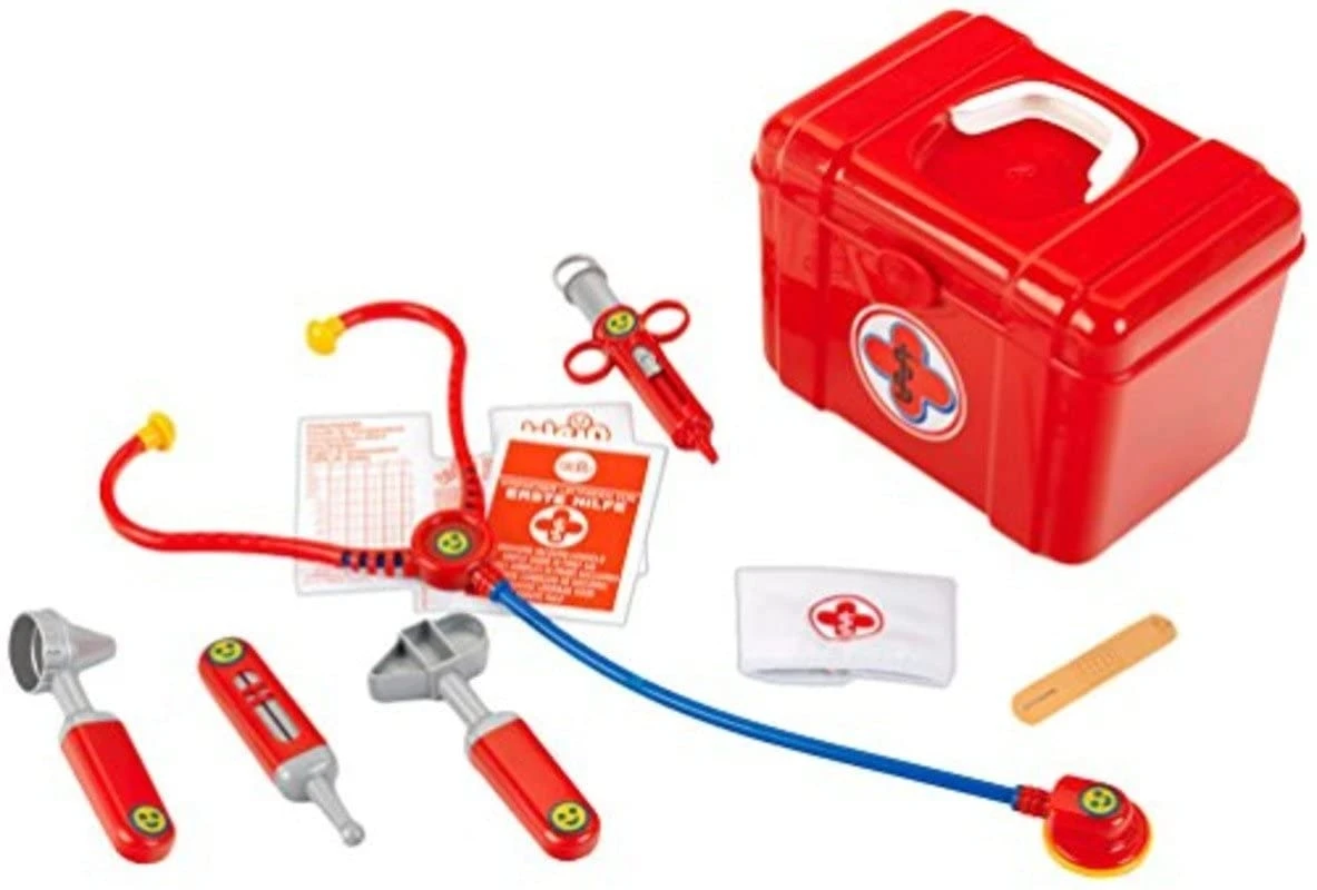Περιλαμβάνει 11 αξεσουάρ: θήκη γιατρού, ωτοσκόπιο, θερμόμετρο, αντανακλαστικό σφυρί, στηθοσκόπιο, σύριγγα, τσιρότο, οδηγίες πρώτων βοηθειών, κάρτα συνταγών, γράφημα πυρετο