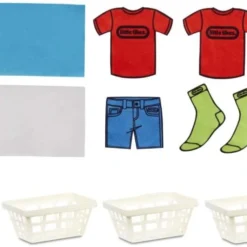 Με ποικιλία αξεσουάρ (όπως κουτί “απορρυπαντικού”, καλάθι απλύτων, μικρά “ρούχα” προς πλύσιμο – συνολικά 11 αξεσουάρ).
