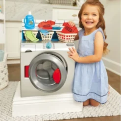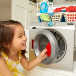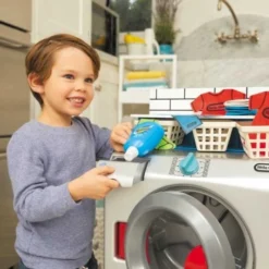 Οι πρώτες οικιακές συσκευές που μοιάζουν με τις αληθινές που χρησιμοποιούν η μαμά και ο μπαμπάς!Τώρα τα παιδιά πλένουν και στεγνώνουν τα ρούχα όπως κάνουν και οι μεγάλοι.Το σετ παιχνιδιού Πλυντήριο-Στεγνωτήριο είναι εξοπλισμένο με πολλά διαδραστικά χαρακτηριστικά.Ενθαρρύνετε τα παιδιά να παίζουν παιχνίδια ρόλων που αφορούν τις δουλειές στο σπίτι καθώς τα βοηθά να αποκτήσουν αίσθηση ευθύνης και συμβάλλει στην κοινωνικο-συναισθηματική τους μάθηση.