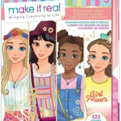 Make It Real- Fashion Design Sketchbook Blooming Vibes Δημιούργησε τα δικά σου σχέδια μόδας. Μία πραγματική έμπνευση για τα νέα κορίτσια που τους βοηθά να αναπτύξουν την δημιουργικότητα! Περιλαμβάνει: – Stencils. – Σελίδες για χρωματισμό. – Αυτοκόλλητα. – Οδηγό σχεδίασης και έμπνευσης.