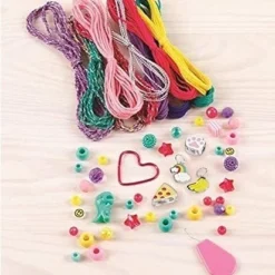 Make It Real – Good Vibes Bracelets Kit Το σετ περιέχει: 7 μέτρα ιριδίζον νήμα σε διάφορα χρώματα 7 μέτρα – βαμβακερό νήμα (διάφορα χρώματα) Διακοσμητικό σε σχήμα καρδιάς 38 χάντρες 2 χάντρες μοτίφ 2 διακοσμητικά μοτίφ δίσκο τοποθέτησης οδηγίες χρήσης