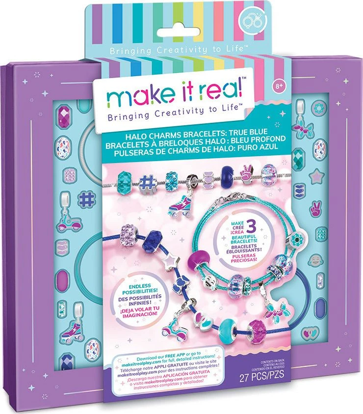 Make It Real- Halo Charms Bracelets True Blue Το παιχνίδι της εταιρίας Make It Real με τις κατασκευές κοσμημάτων αποτελεί μια από τις πιο δημιουργικές δραστηριότητες για τα παιδιά. Συμβάλλει στην ανάπτυξη των λεπτών κινητικών δεξιοτήτων, της φαντασίας και της υπομονής για την ολοκλήρωση του έργου τους.