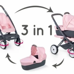 Smoby Καρότσι Κούκλας Quinny + Pram Pink Ένα ολοκληρωμένο καροτσάκι για να πάρετε την κούκλα του μωρού σας παντού μαζί σας! 3in1 αυτό το καροτσάκι σάς επιτρέπει να διαλέξετε την επιλογή που σας ταιριάζει ανά πάσα στιγμή! Με μεταλλικό σκελετό, αποθηκευτικό χώρο, εργονομική λαβή και αθόρυβους τροχούς. Κατάλληλο για κούκλες…